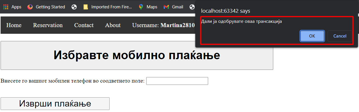 Овој чекор е поради безбедност на информациите кои што клиентот ги внесува во нашата апликација, системот автоматски испраќа уште една верификација на тоа плаќање.