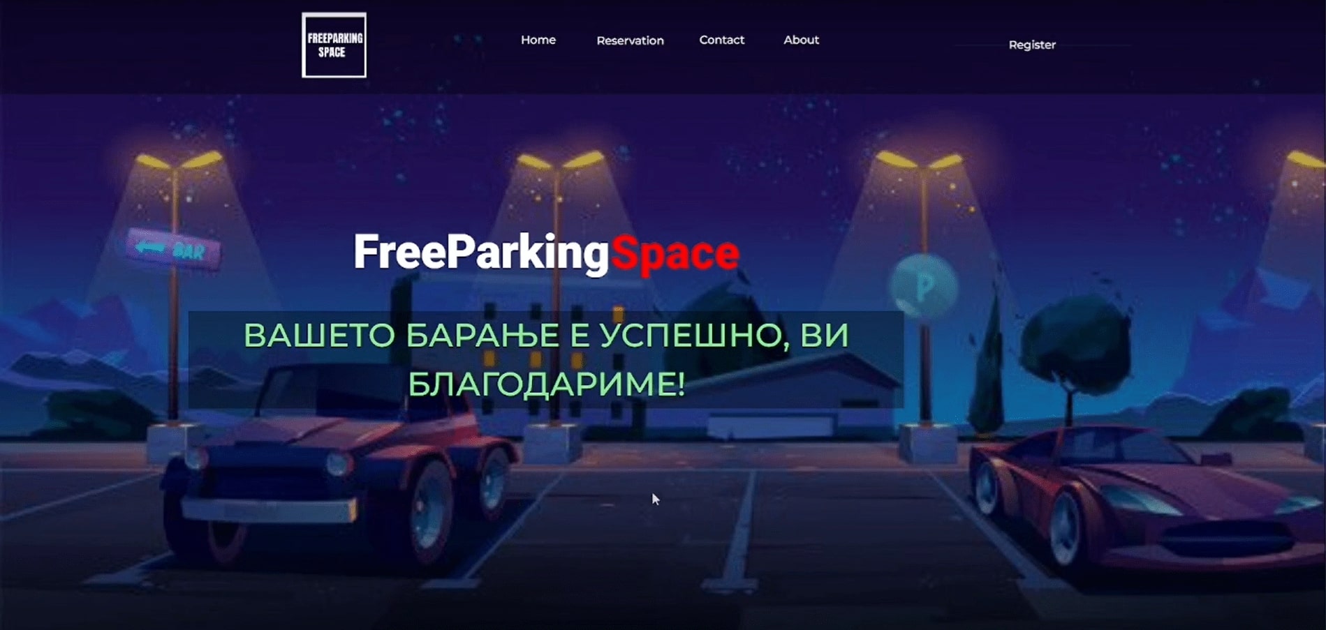 Откако корисникот ќе резервира соодветно паркинг место се појавува следната порака.
