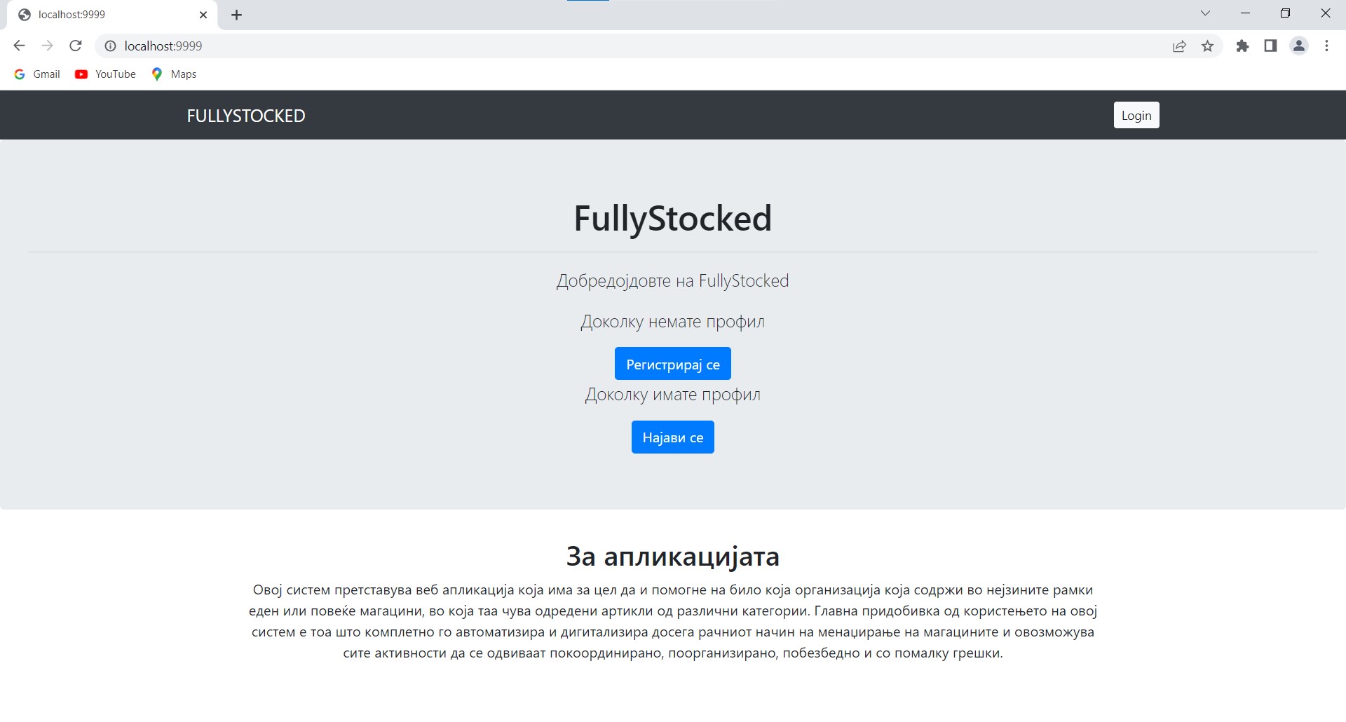 По успешна најава, корисникот е пренасочен кон почетната веб страна каде што избира да се најави. Претходно внесените параметри за регистрација ги внесува во формата за најава.