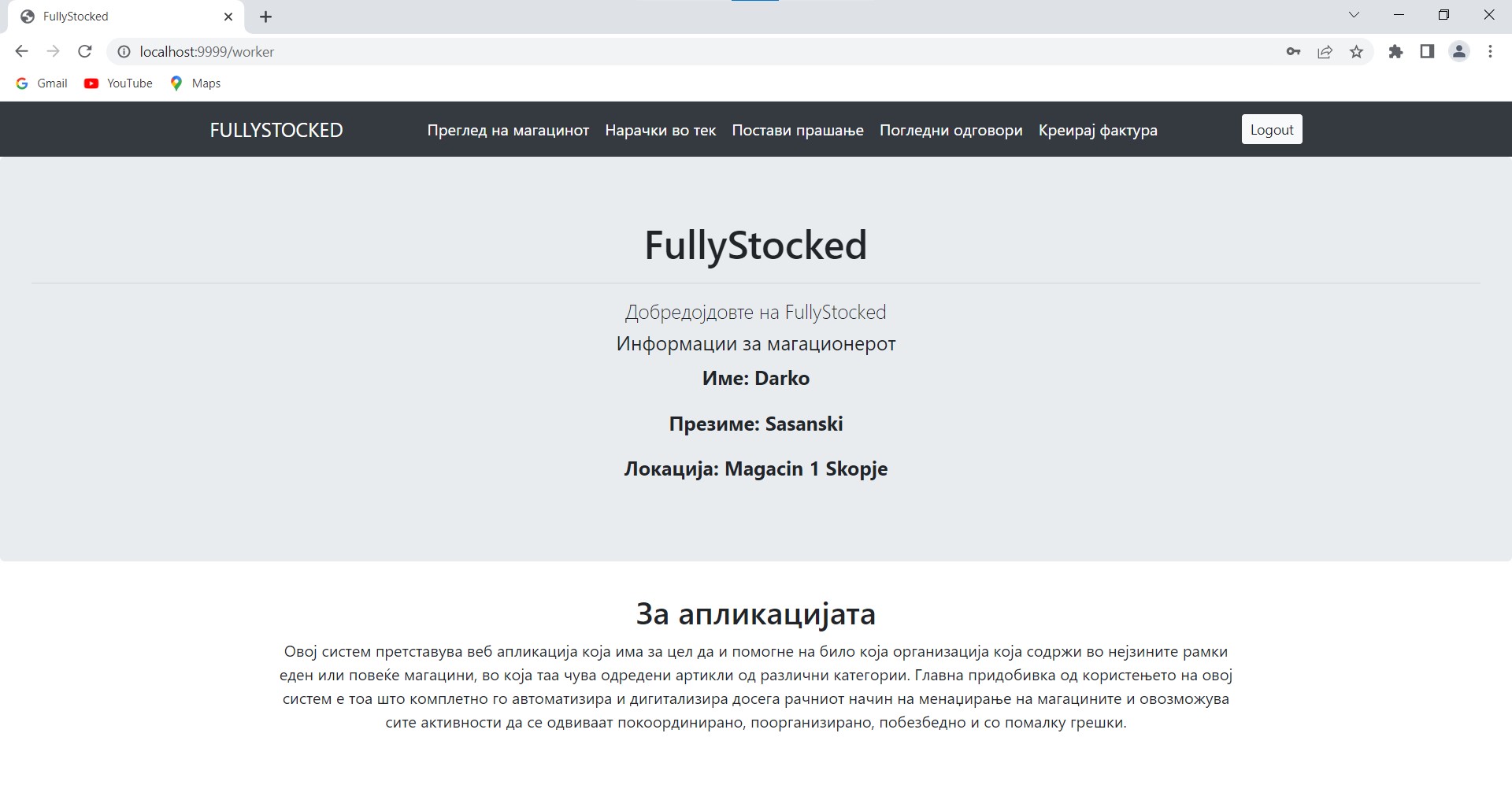 По успешна најава, на магационерот му се прикажува почетната страна со привилегии за магационер.