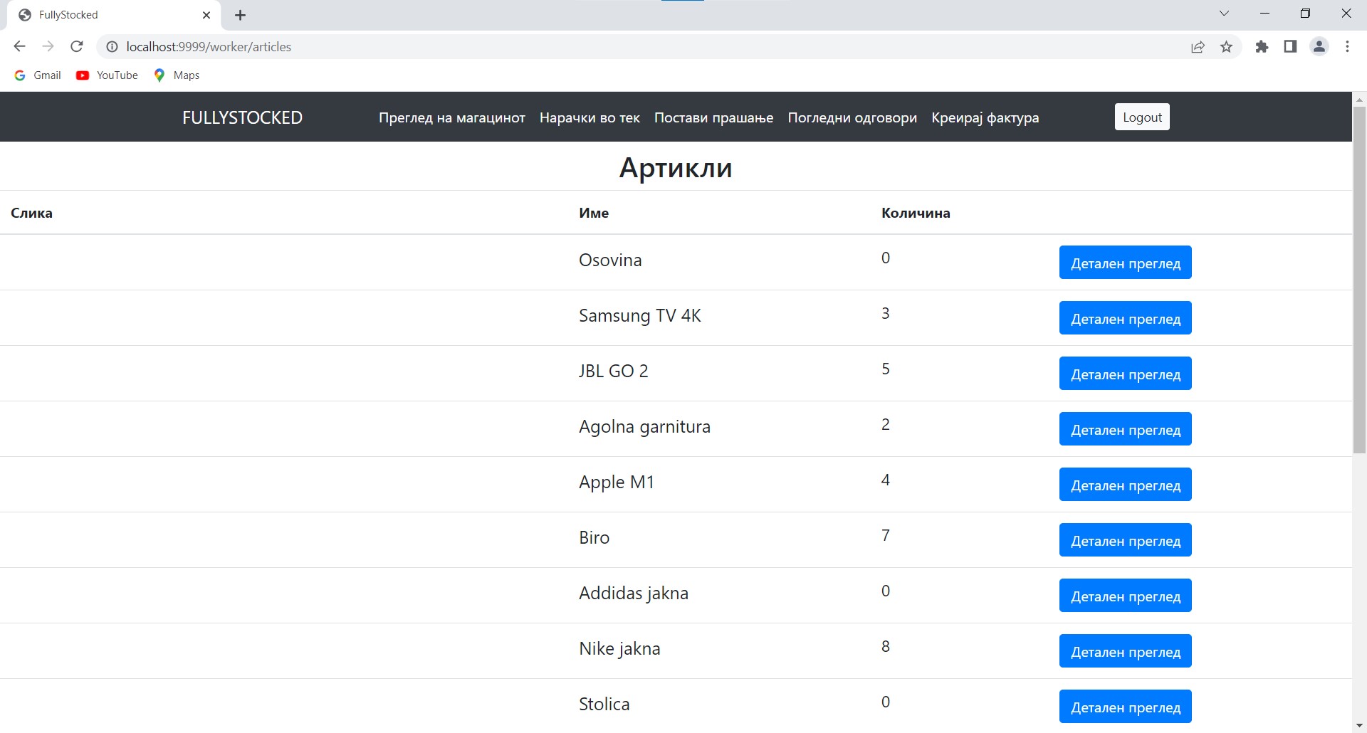 Магационерот избира да му се прикажат сите артикли кои се чуваат во магацинот во кој е доделен магационерот.
