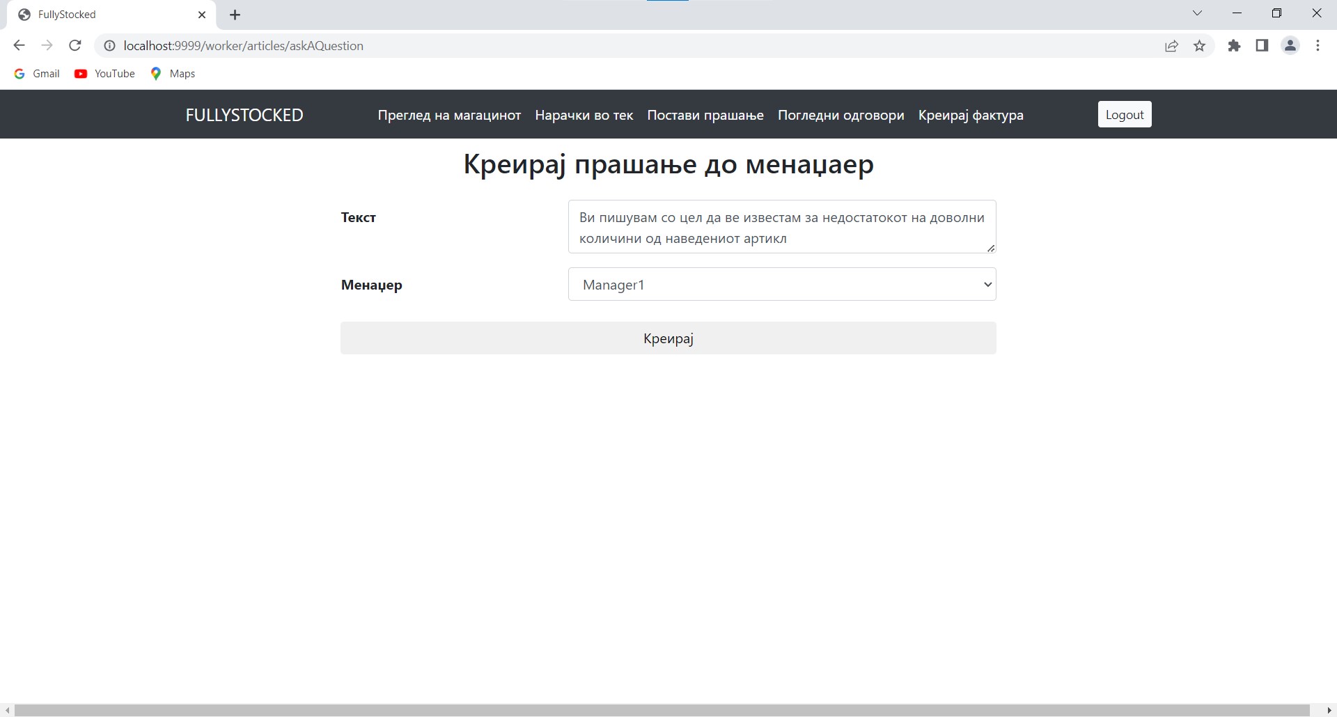 Магационерот избира да го извести избраниот менаџер за недостапност на дадениот артикл.