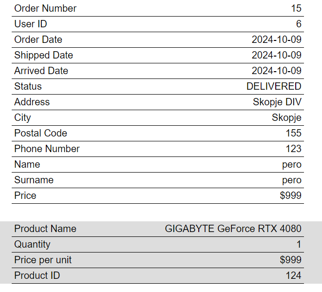 Клиентот ги внесува информациите за картичката и клика checkout со што успешно ќе ја направи нарачката.