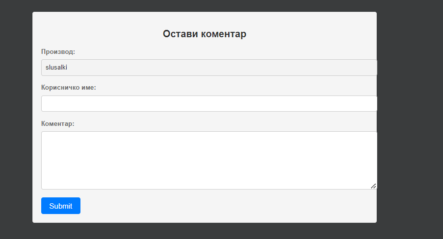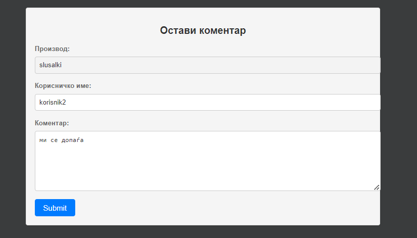 3. Корисникот ги внесува потребните податоци и притиска на копчето submit