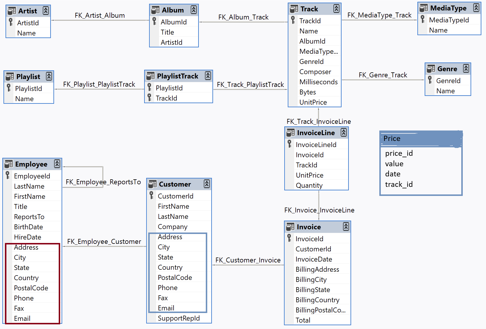 costs – Track може да има повеќе Price низ различни датуми, Price е за точно еден Track.