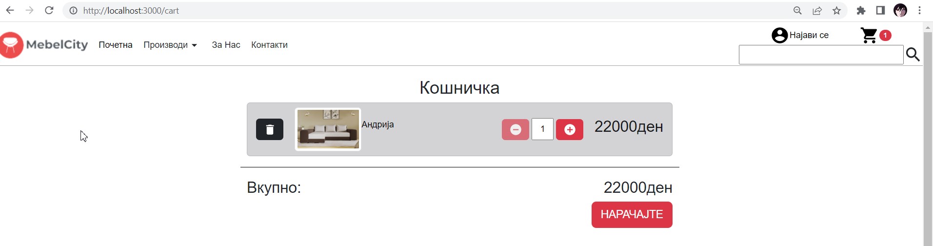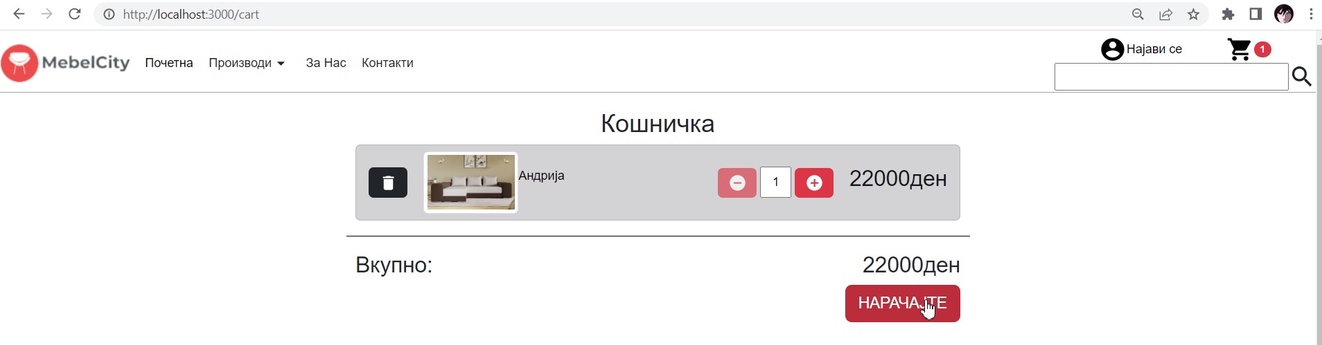 За преглед во кошничката потребно е корисникот да кликне на иконката со кошничка која се наоѓа во заглавјето