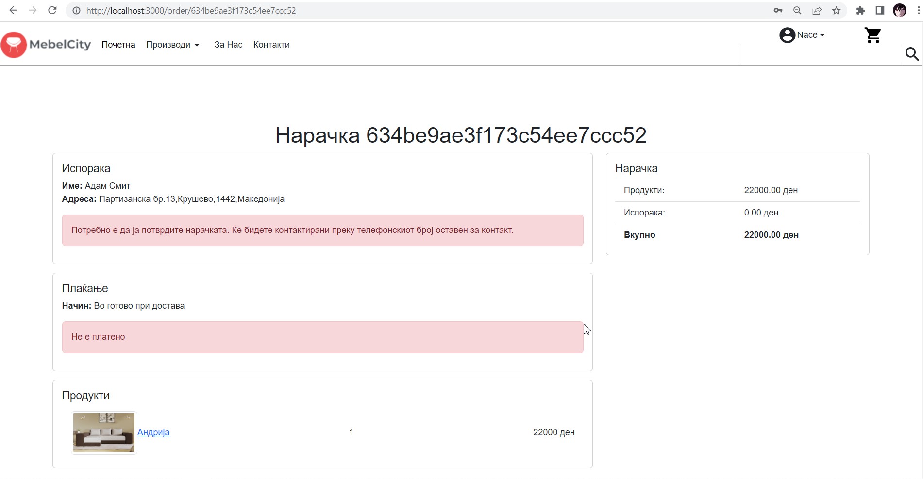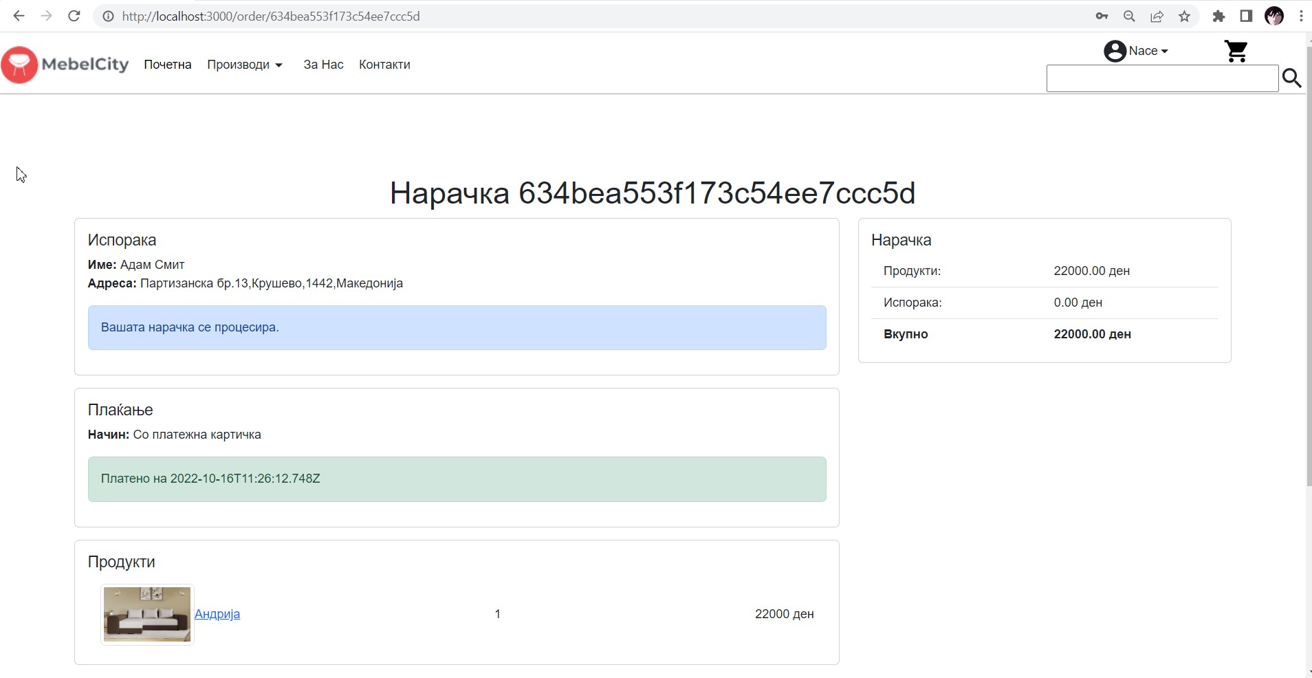 Нарачката е успешно направена и корисникот добива преглед на нарачката