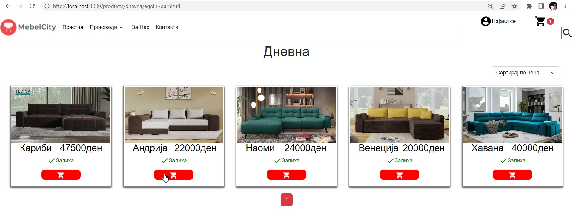 При разгледување на производите, корисникот за да го додаде производот во кошничка треба да кликне на копчето со иконка од кошничка