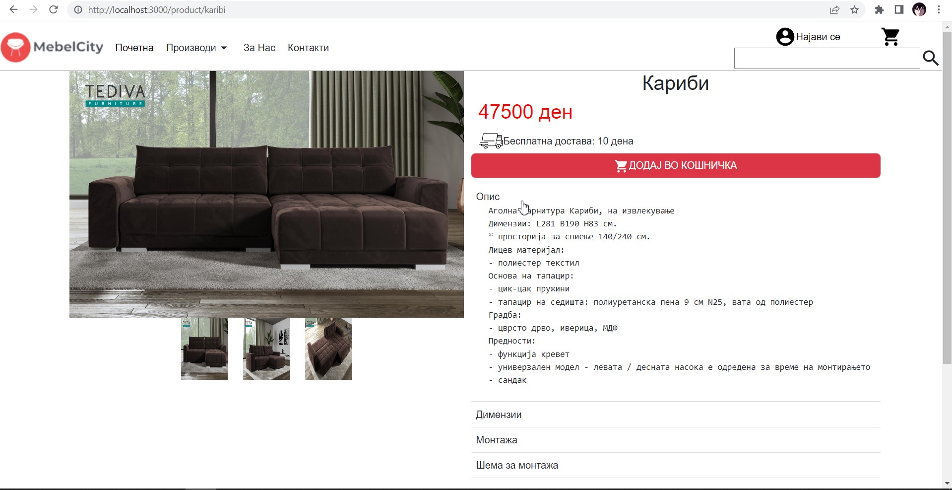 При разгледување на производите, корисникот може да кликне на производ и да биде префрлен на страна со повеќе информации за производот