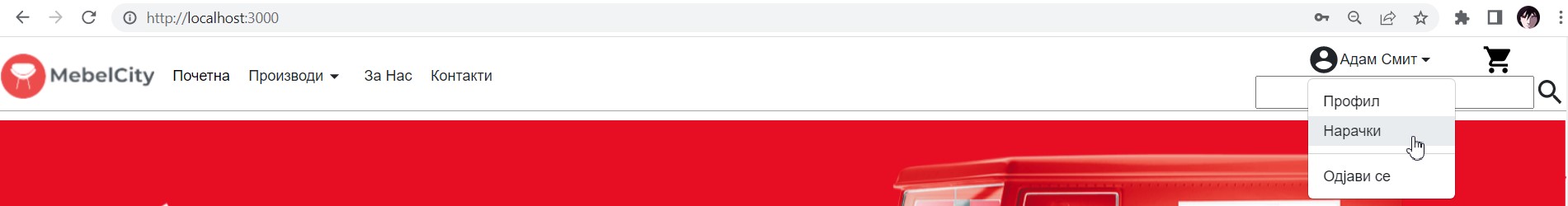 За пристапување до историјата на нарачки корисникот најпрво треба да кликне на своето име и од менито да одбере „Нарачки“