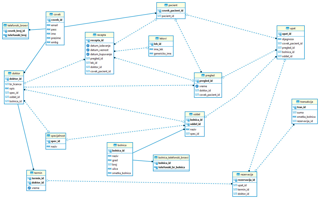 - Bolnica_telefonski_br (bolnica_id* (Bolnica), telefonski_br)