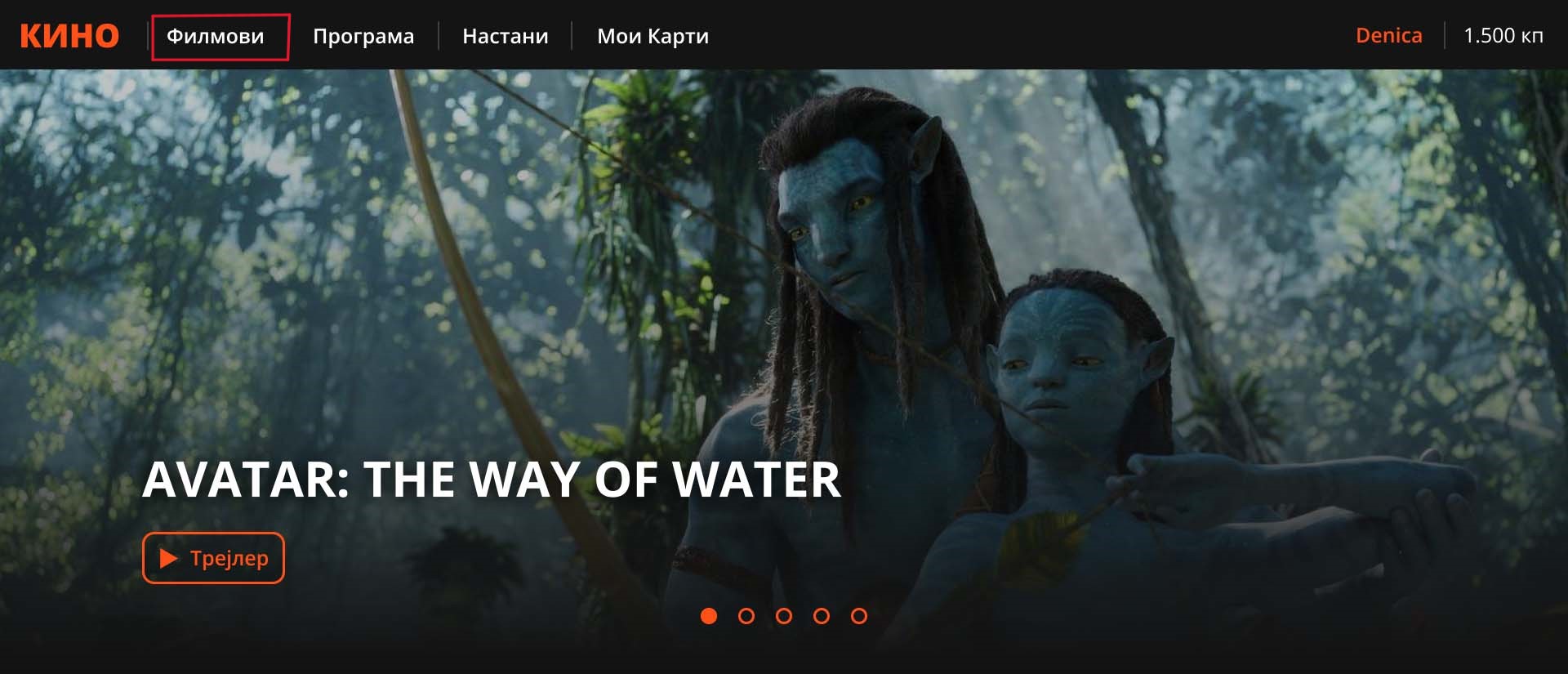 Корисникот клика на копчето Програма од навигацијата каде му се прикажуваат сите филмови моментално достапни во сите кина.