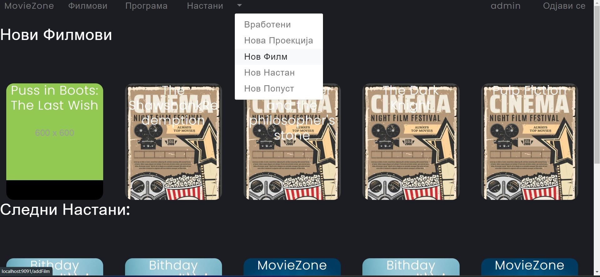 1. Корисникот притиска на опаѓачката листа од навигацијата и клика копчето "нов филм"