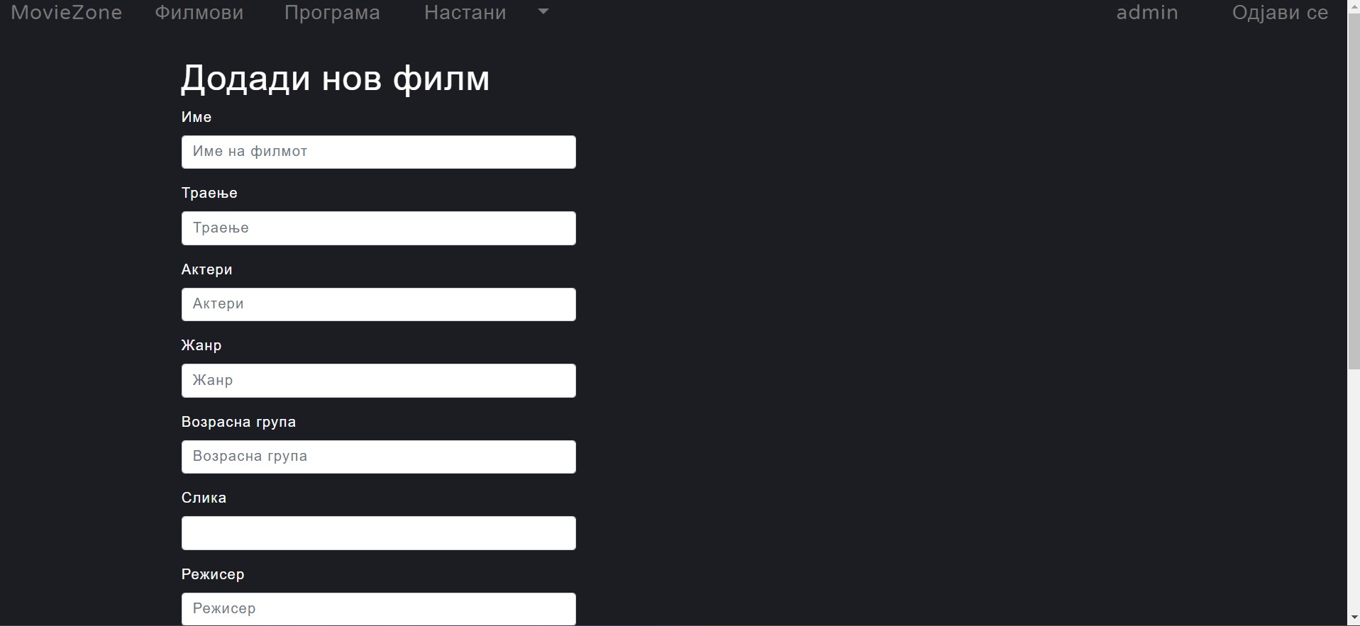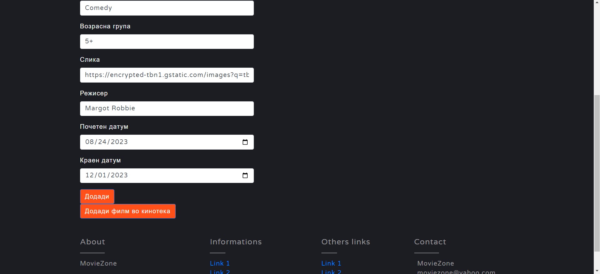3. Корисникот ги пополнува податоците и клика на копчето "додади" по што филмот е додаден во базата