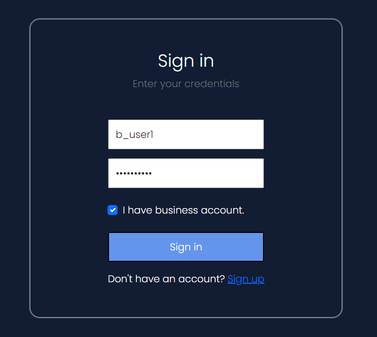Се извлекуваат сите податоци за бизнис корисникот доколку лозинката и корисничкото име се совпаѓаат со пдоатоците во база.