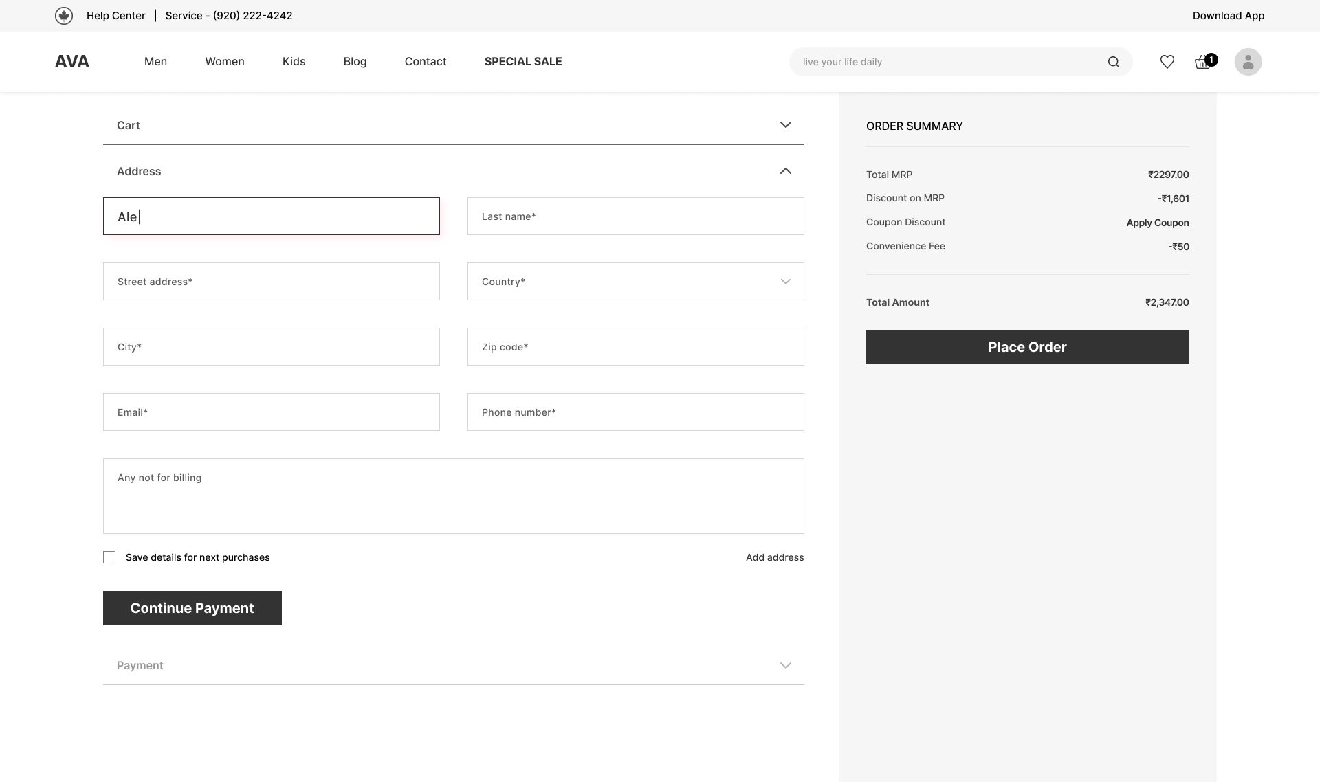 Откако би кликнале на копче Продолжи, доаѓа наредниот чекор каде внесуваме податоци за плаќање,податоци за достава на производот и контакт.