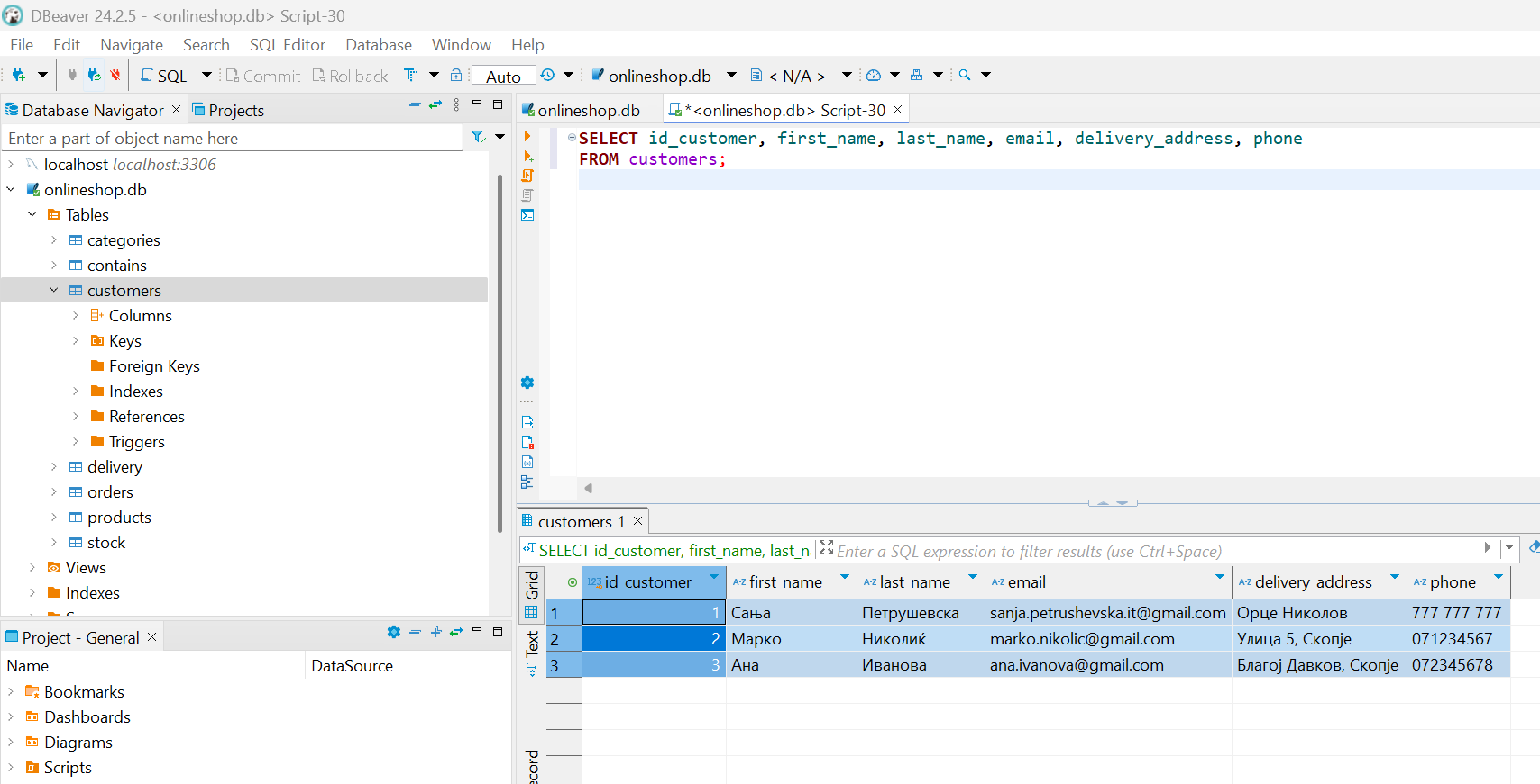 Бидејки базата не е наполнета, ке додадам информации за customers :