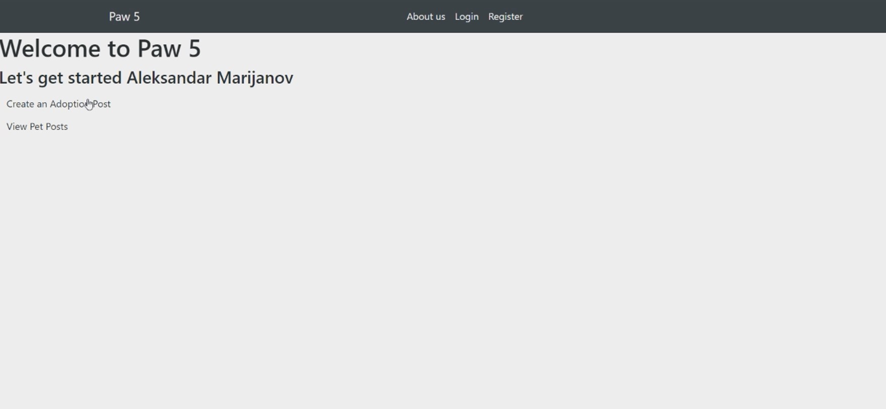 За да се креира оглас за милениче прво треба корисникот да се најави со корисничка сметка на вработен во прифатилиште или граѓанин - огласувач на милениче. Во овој пример корисникот е вработен во прифатилиште.