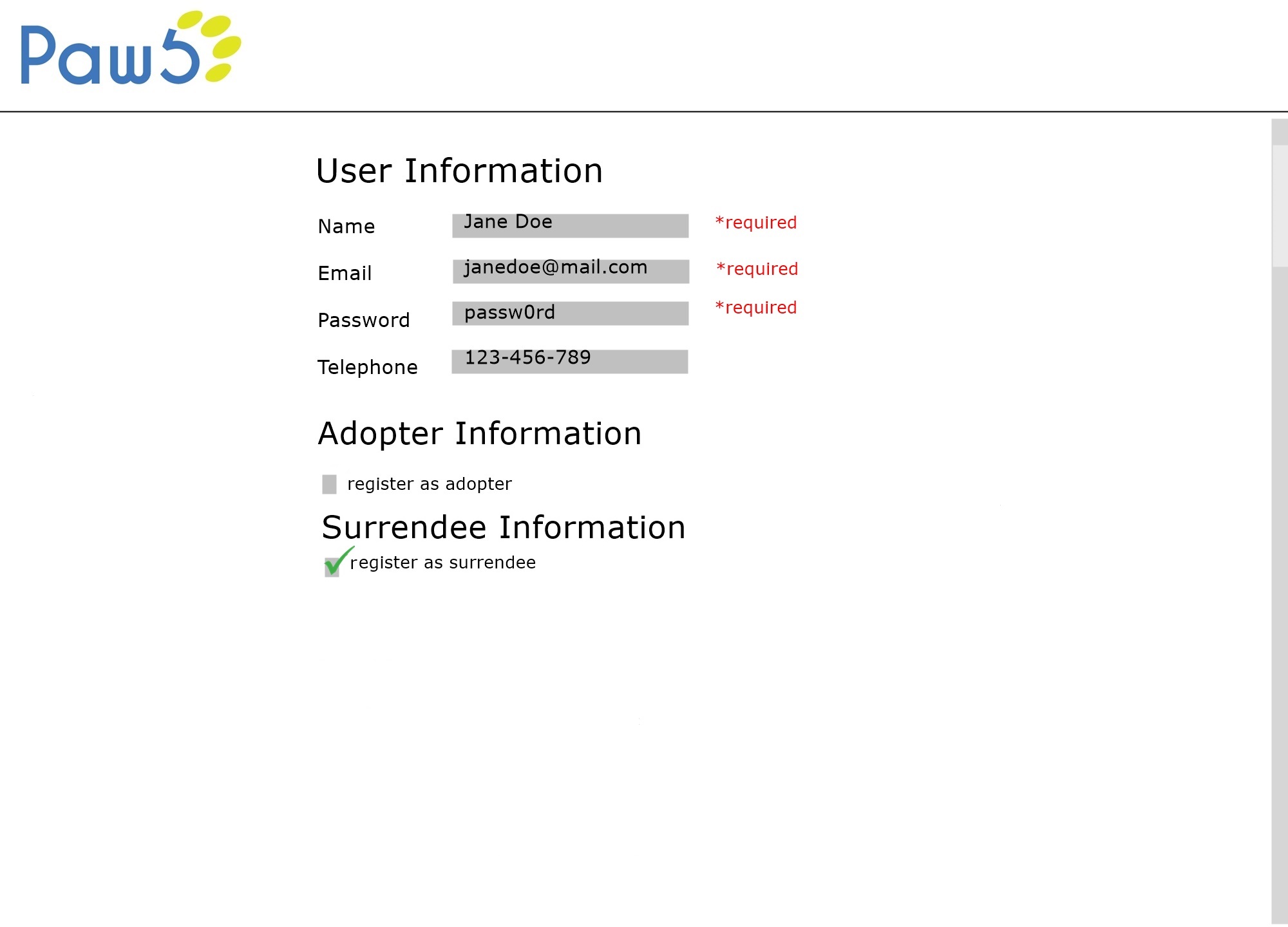 Корисникот ги пополнува сите потребни информации на миленичето.