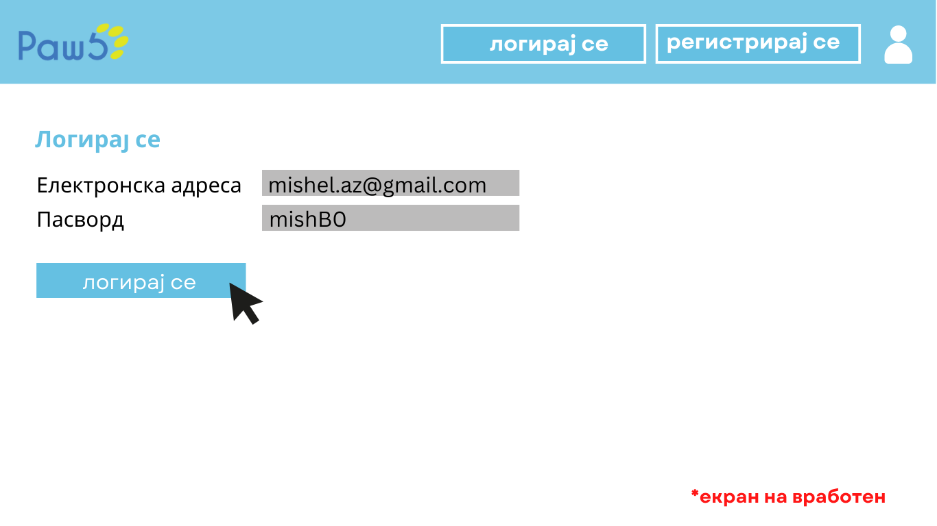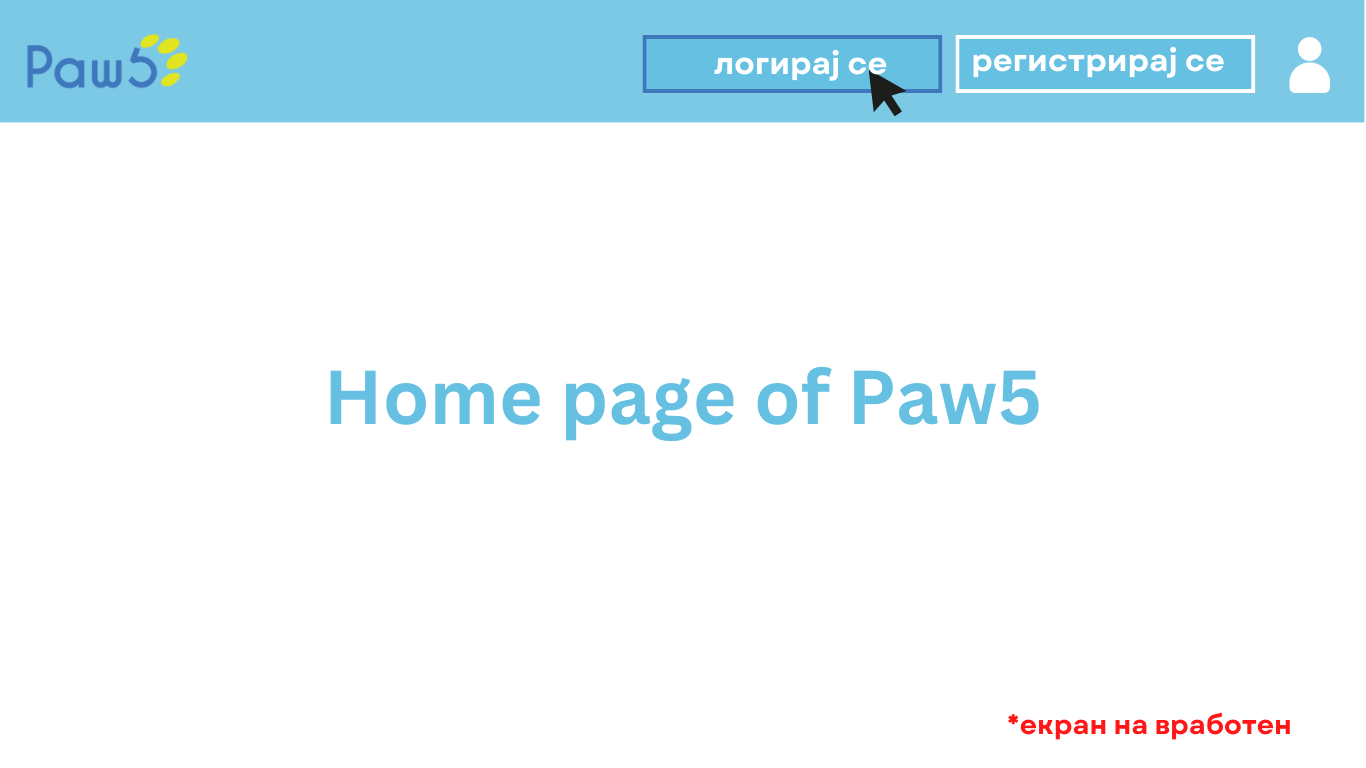 - На корисниците им се прикажува почетната страна на веб-сајтот на која има опција да се регистрираат или најават.