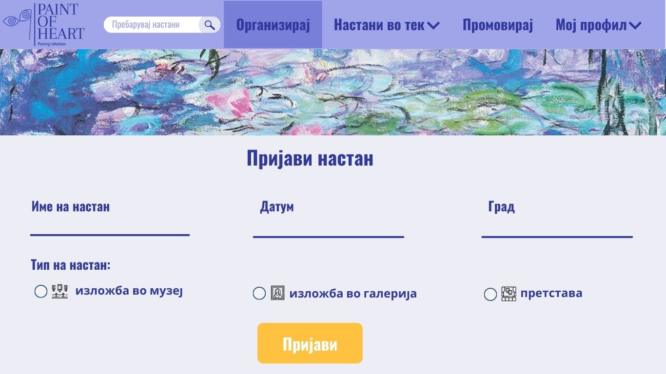 Следува форма која корисникот треба да ја пополни за да испрати барање за организирање на настан.