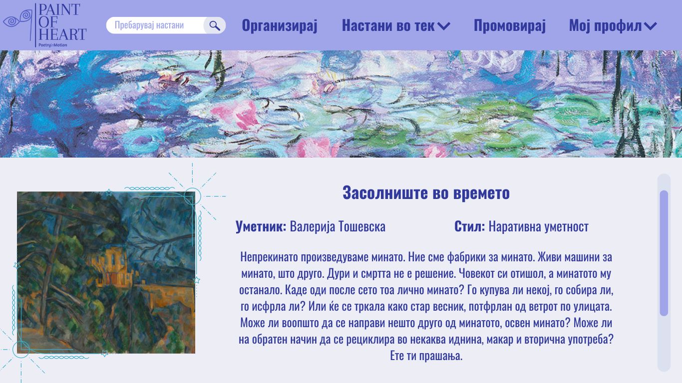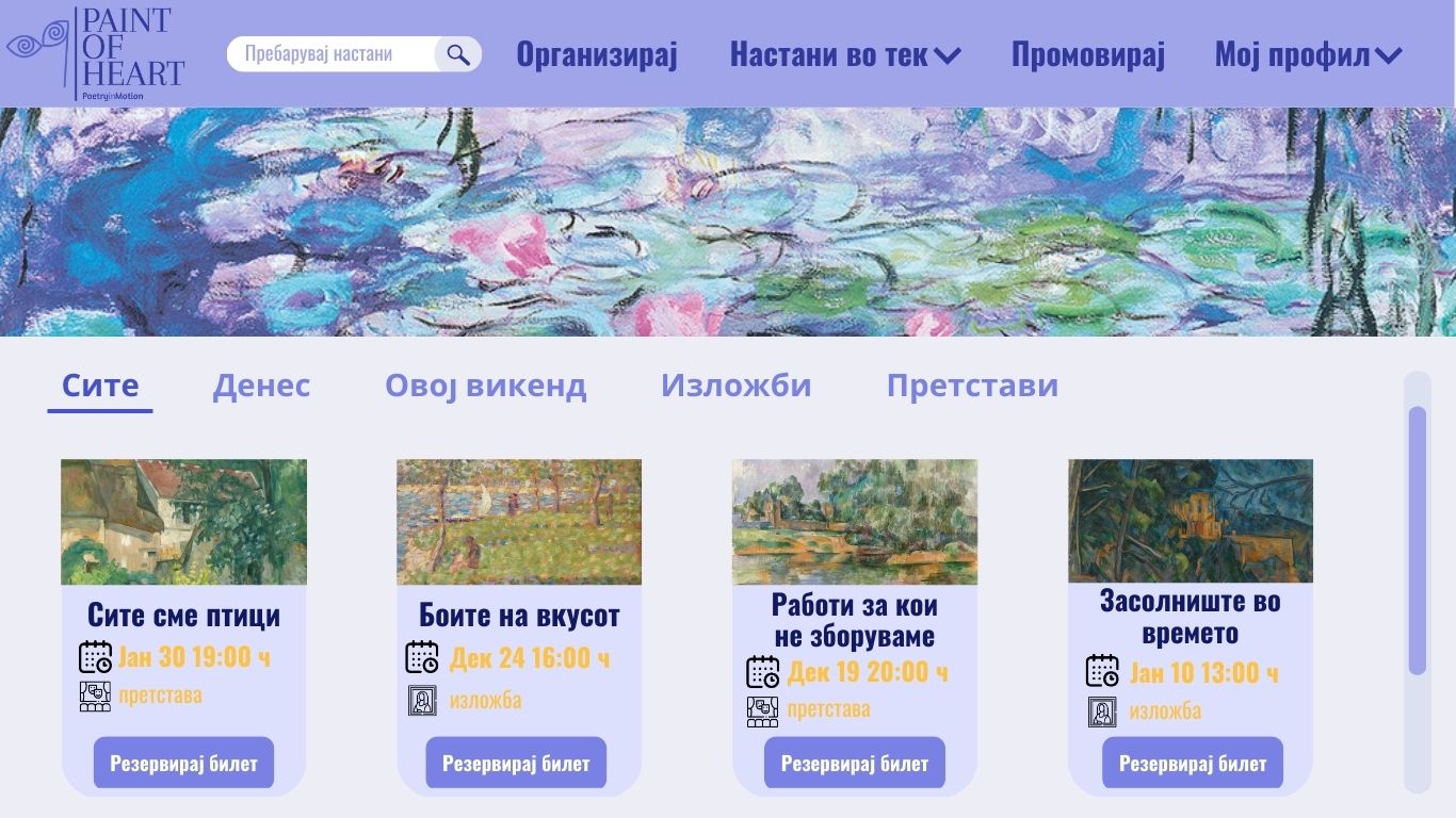 Претпоставуваме дека купувачот е веќе регистриран и најавен на системот и се наоѓа на почетната страна со понудените настани.