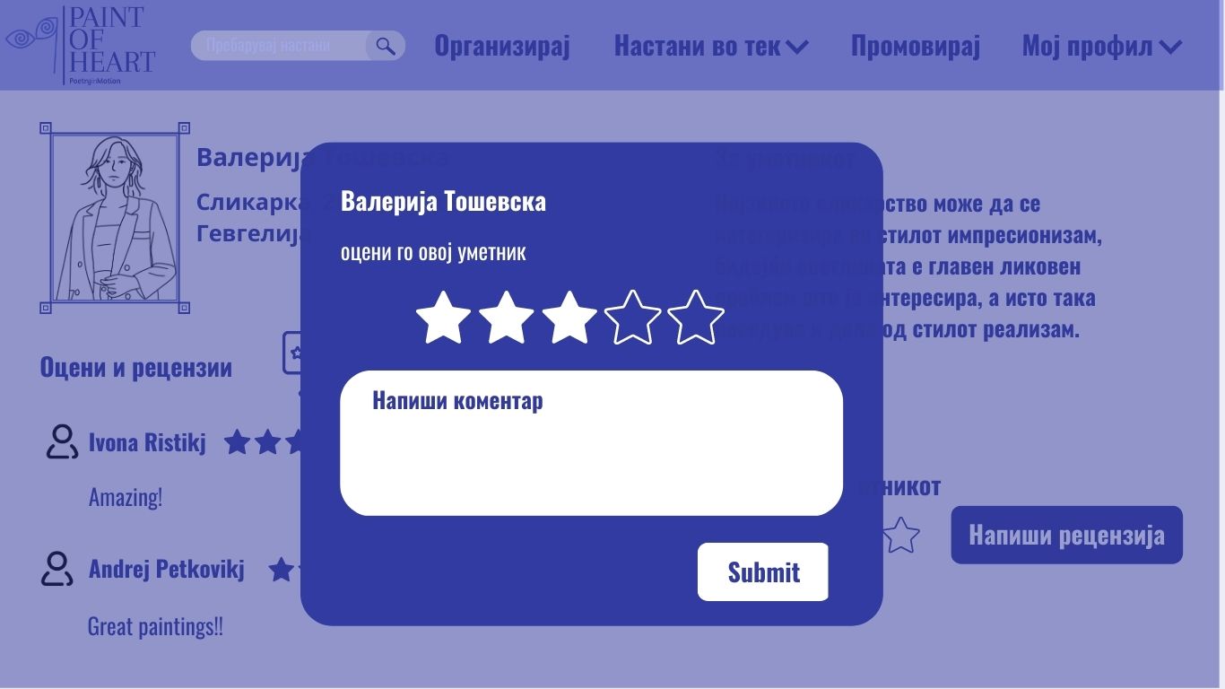 Купувачот може да го оцени артистот и да напише коментар.