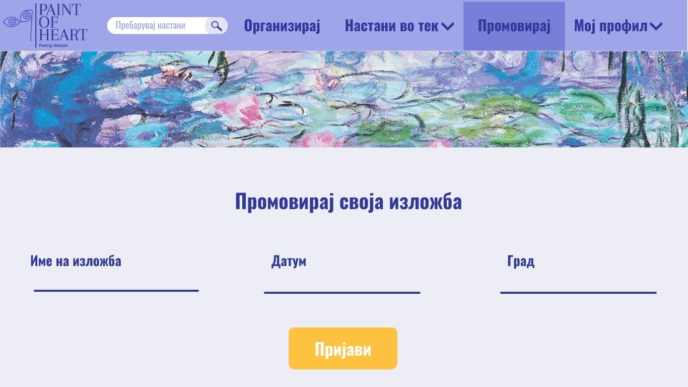 Следува форма која корисникот треба да ја пополни за да испрати барање за промовирање на настан.