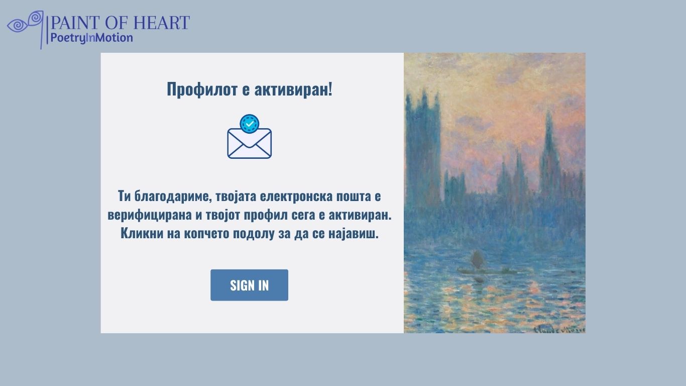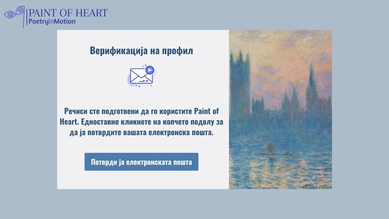 Се побарува од корисникот да го верифицира својот профил преку својата електронска адреса и кликнува на соодветното копче.