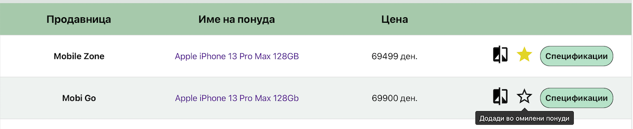 | 1 | Зачувува понуда на мобилен телефон како омилена |