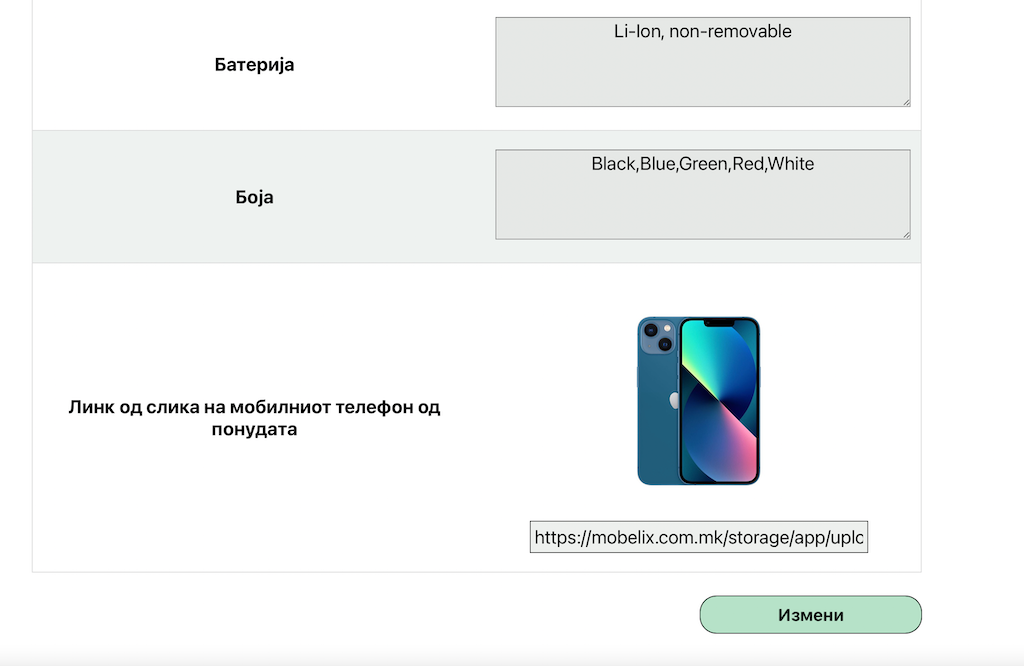 | 1 | Прави измена на спецификациите на понуда за даден мобилен телефон |