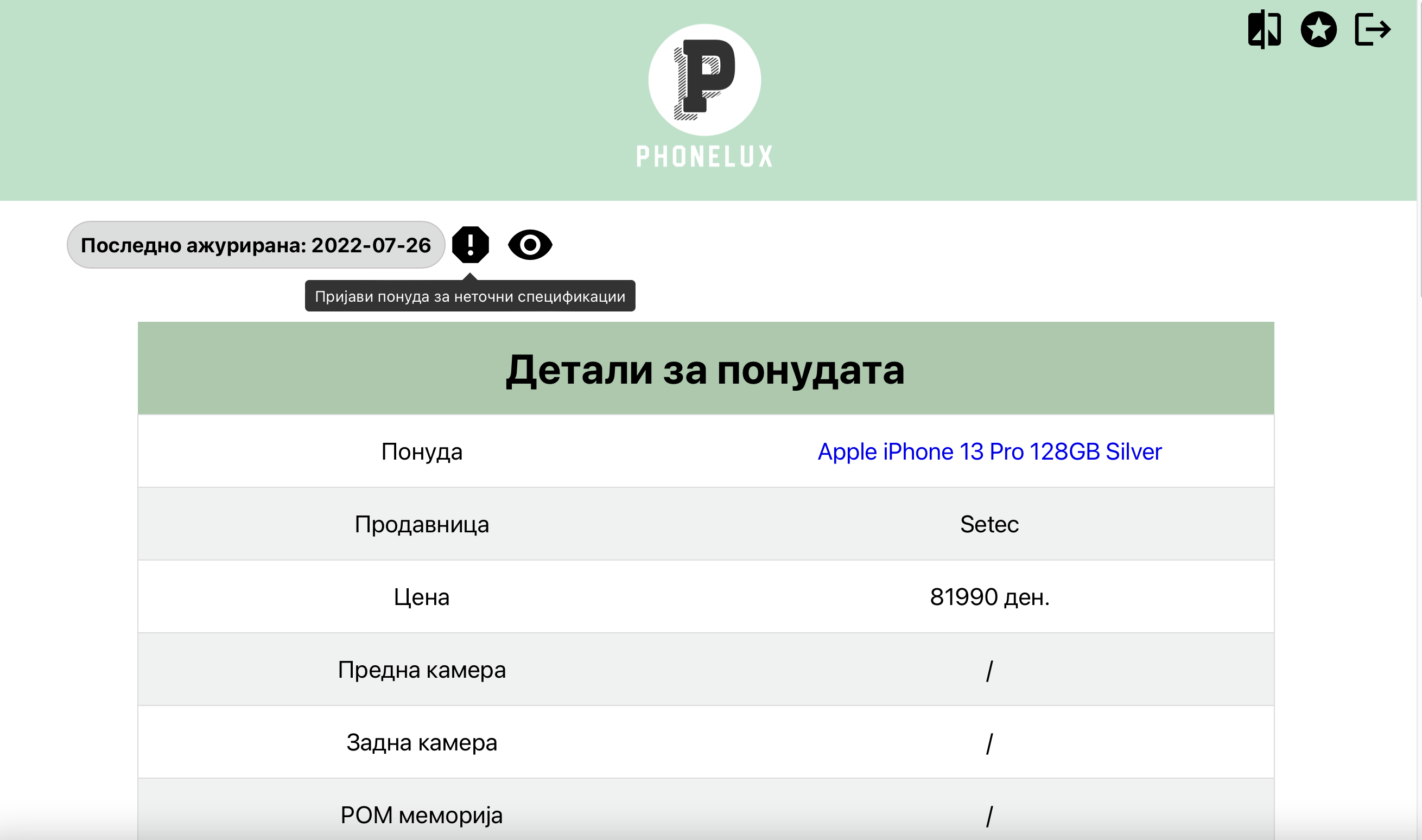 | 1 | Зачувува понуда на мобилен телефон како омилена |