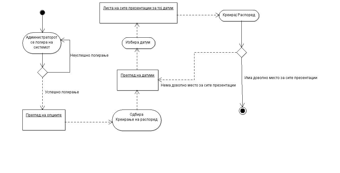 | Trigger: | Потребно е организација на презентациите за одреден ден