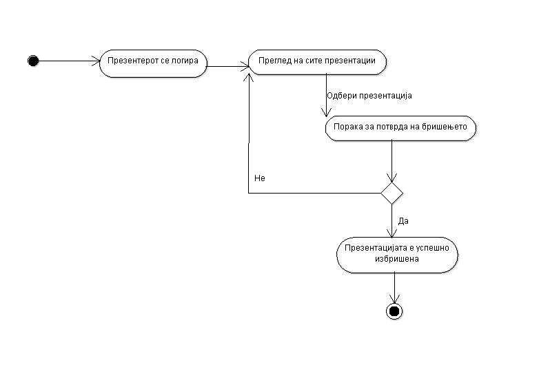 | Use Case Name: | Бришење на презентација