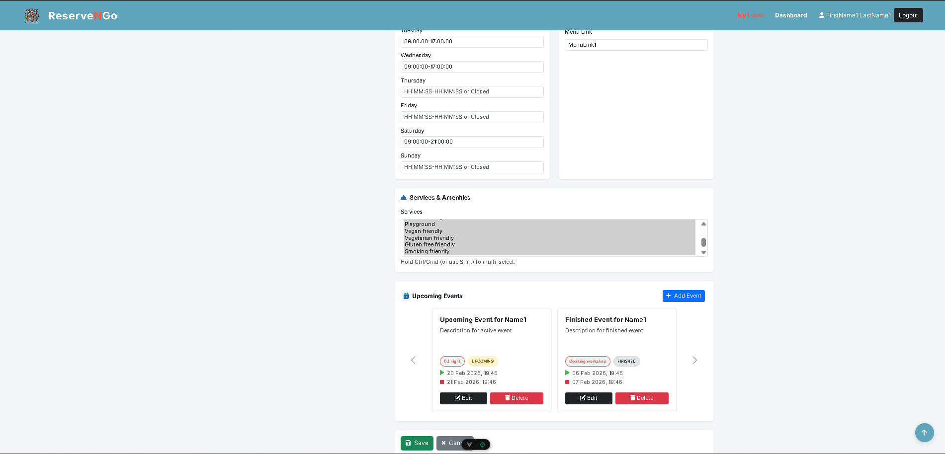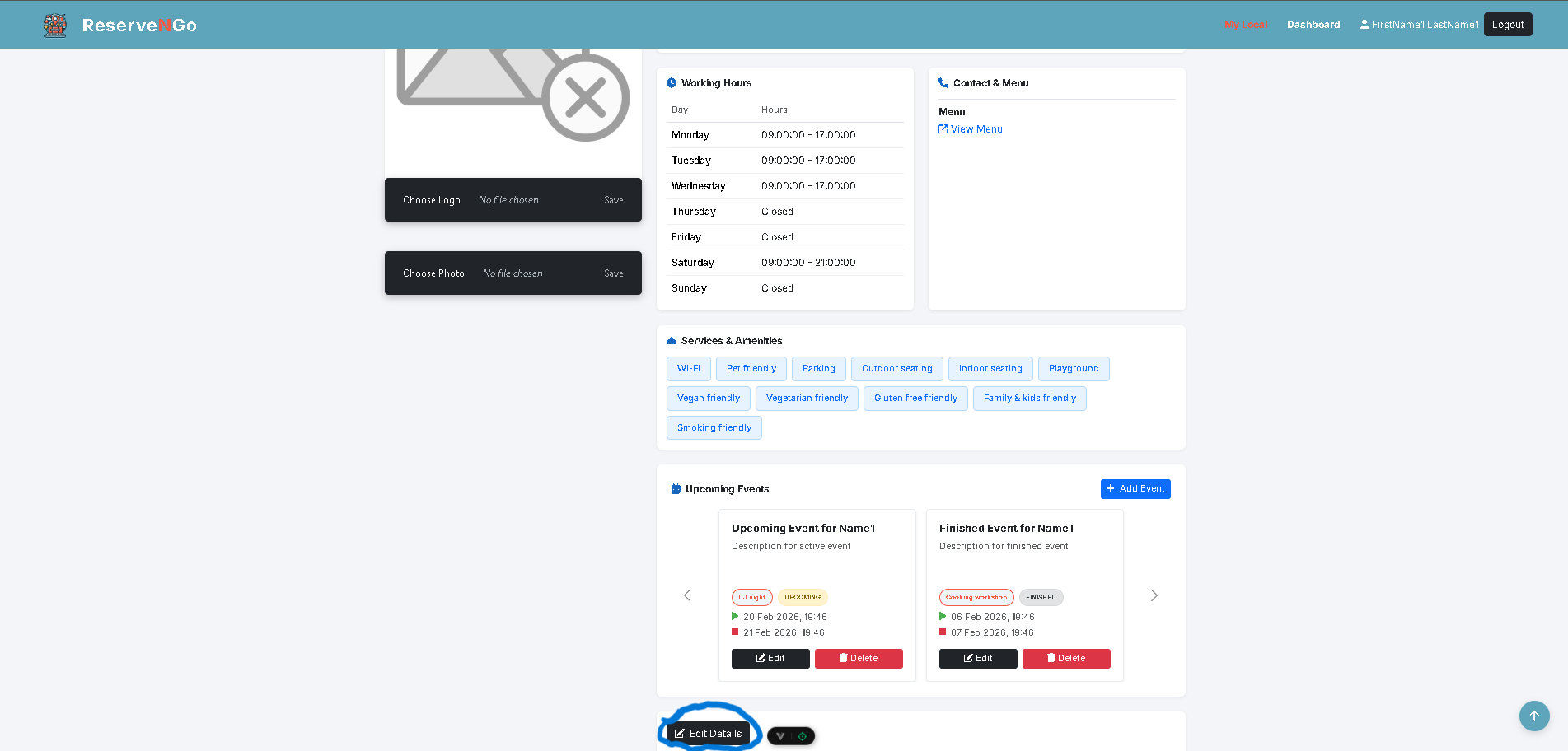 Менаџерот избира опцијата за уредување или ажурирање на податоците за сопствениот локал.