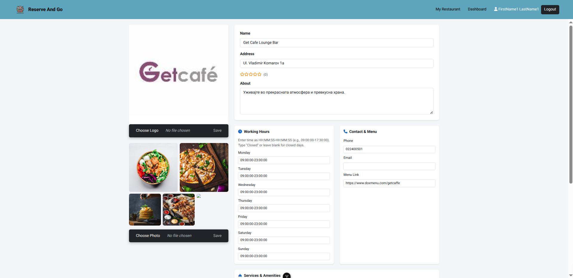 Менаџерот може да ги менува податоците за локалот кој му е назначен преку интуитивна форма која е доста слична на самиот детален преглед за локалот.