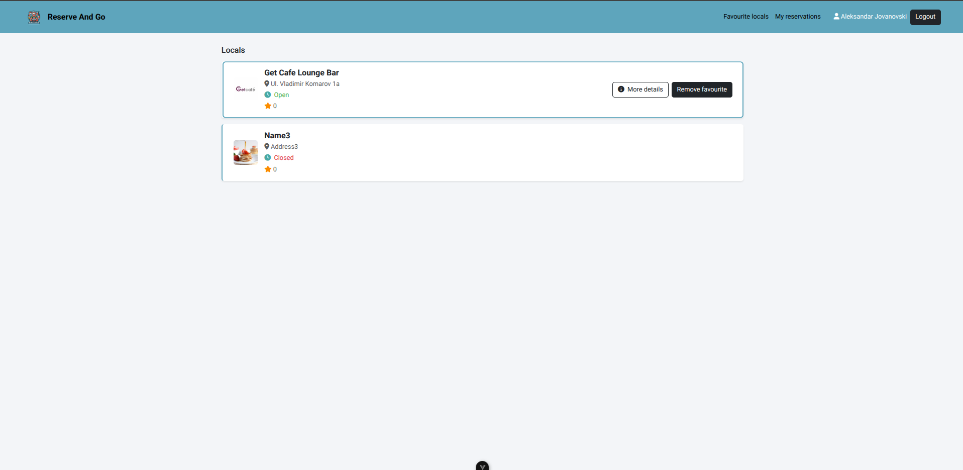 Корисникот има можност од листата на локали да си одбере кој локал ќе го означи како свој омилен. За да се олесни корисничкото искуство секој локал кој бил претходно означен како омилен се распознава по неговото копче за додавање во омилени локали.