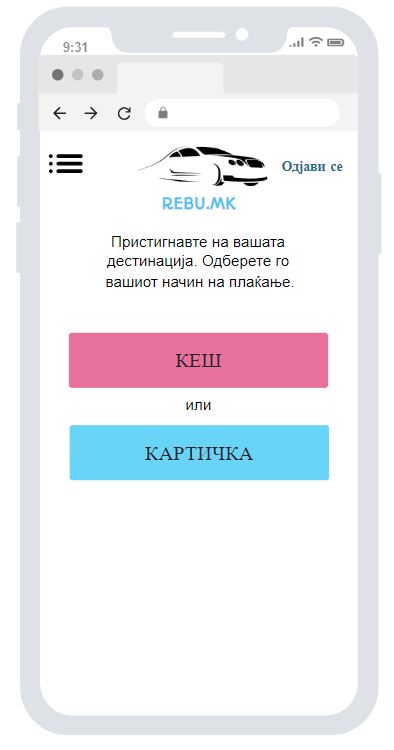 - Патникот ја отвара апликацијата и го одбира начинот на кој сака да го плати патувањето(во овој случај ја одбира картичката).