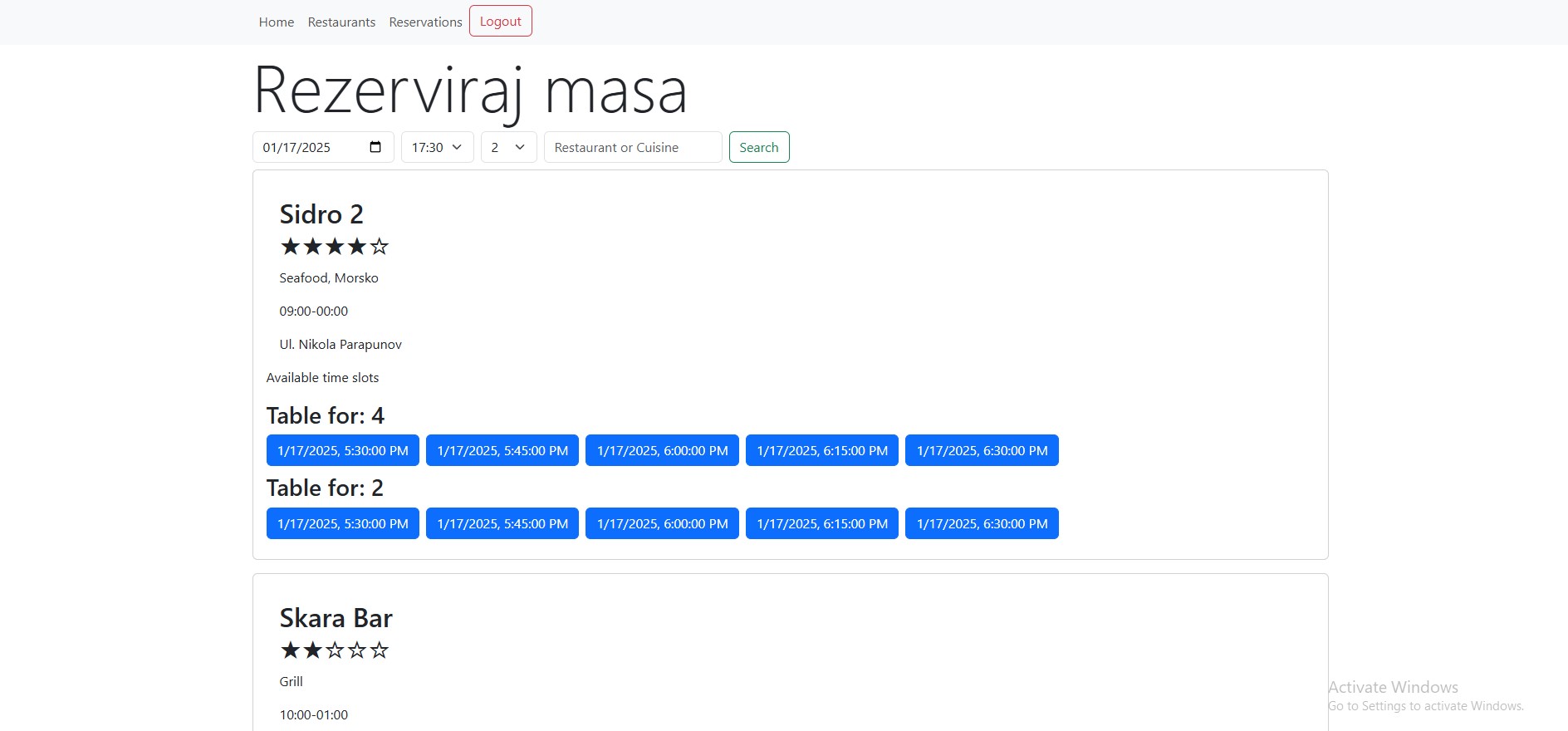 - На корисникот му се прикажува почетната страна на веб-сајтот со сите актуелни локали.