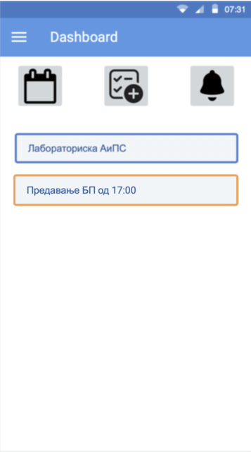 На корисникот му се прикажува екран каде се излистани сите calendar_event(s) кои ги има.