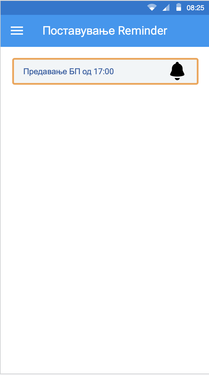 Најавениот корисник ја избира опцијата за поставување Reminder (третата опција од главното хоризонтално мени).