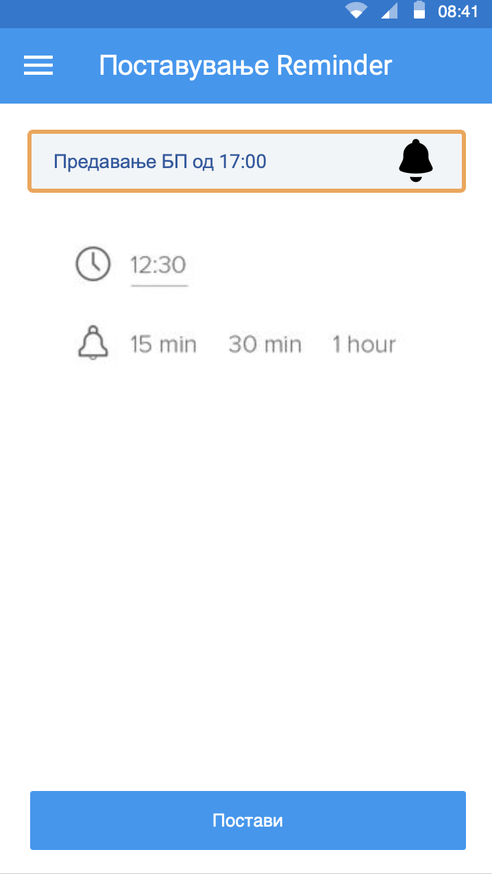 На корисникот му се прикажува форма за внесување на податоци за Reminder, кои треба да ги пополни.