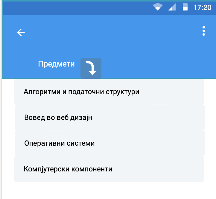 Од листата на веќе предходно внесени предмети, најавениот корисник го избира предметот за кој се однесува испитот кој сака да го внесе (предметите се излистани по редослед на внесување).
