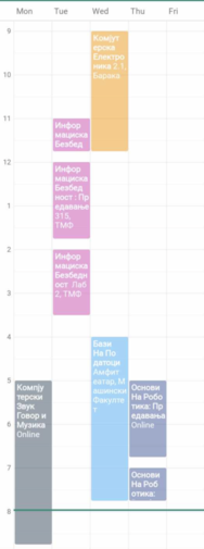 На овој приказ на студентот му се излистуваат сите часови кои ги има внесено за тековниот семестар.