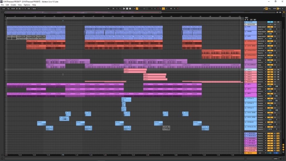 Во прилог се наоѓа финалниот поглед од проектот во којшто се гледа структурата при организацијата и аранжирањето на аудио записите во Ableton, коишто се експортирани од SuperCollider кадешто беа претходно изгенерирани.