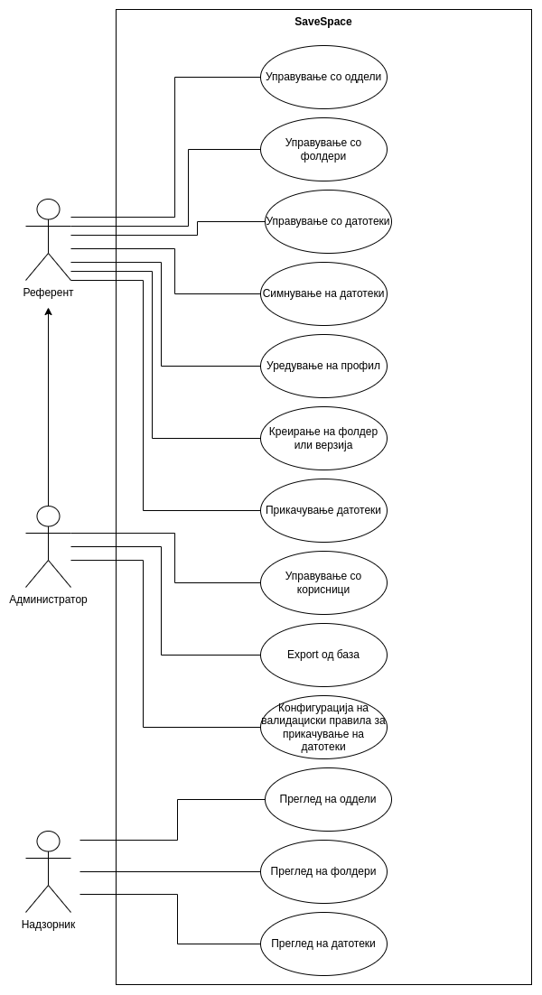 - Референт - корисник кој има пристап да управува со оддели, фолдери и датотеки.