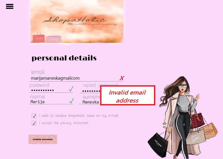 Неуспешна регистрација, односно внесените податоци не се валидни