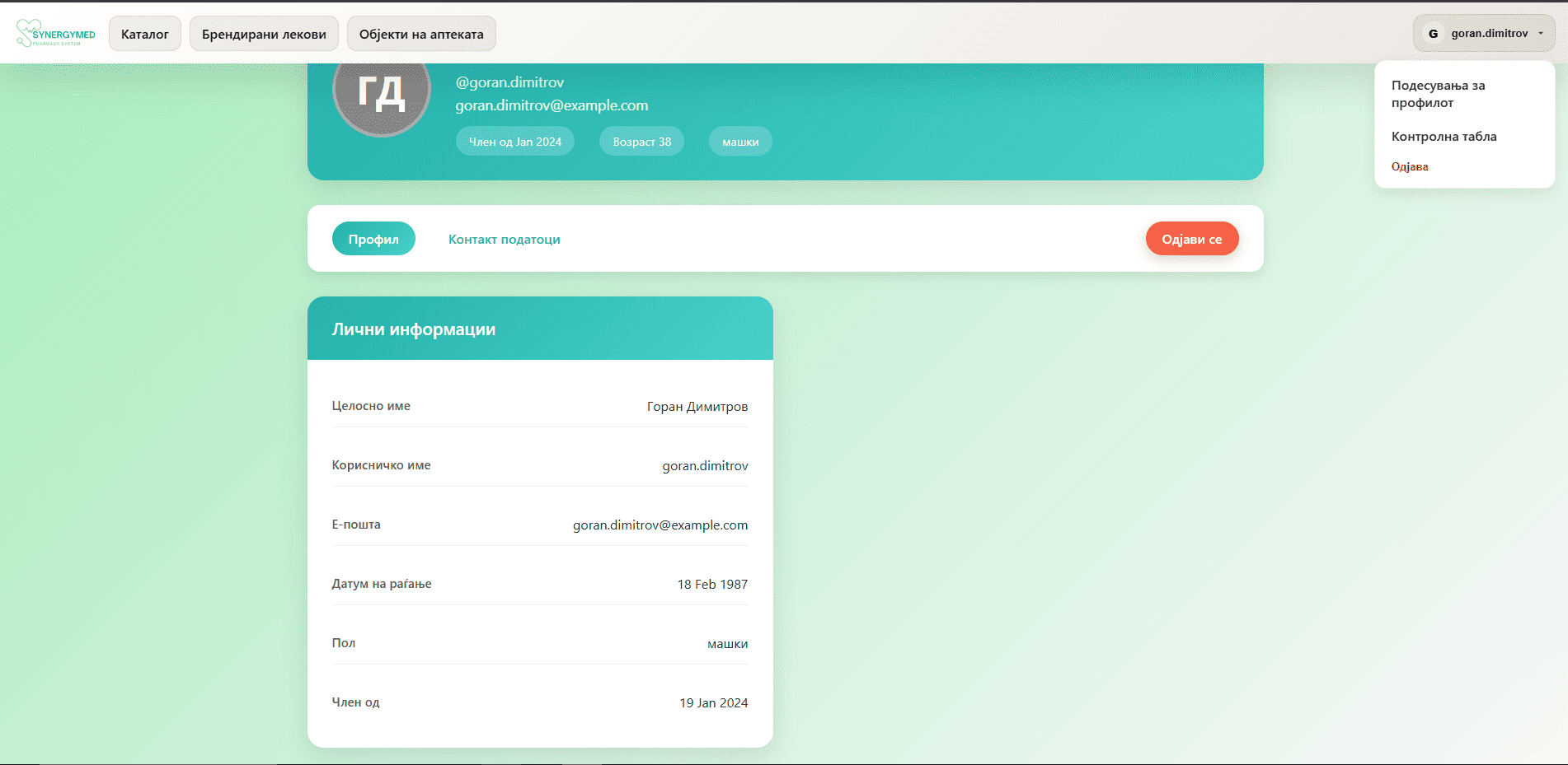 - Во базата на податоции се креира нов ентитет HealthProfile за конкретниот клиент, и клиентот сега има можност да управува со повеќе опции на својот профил.