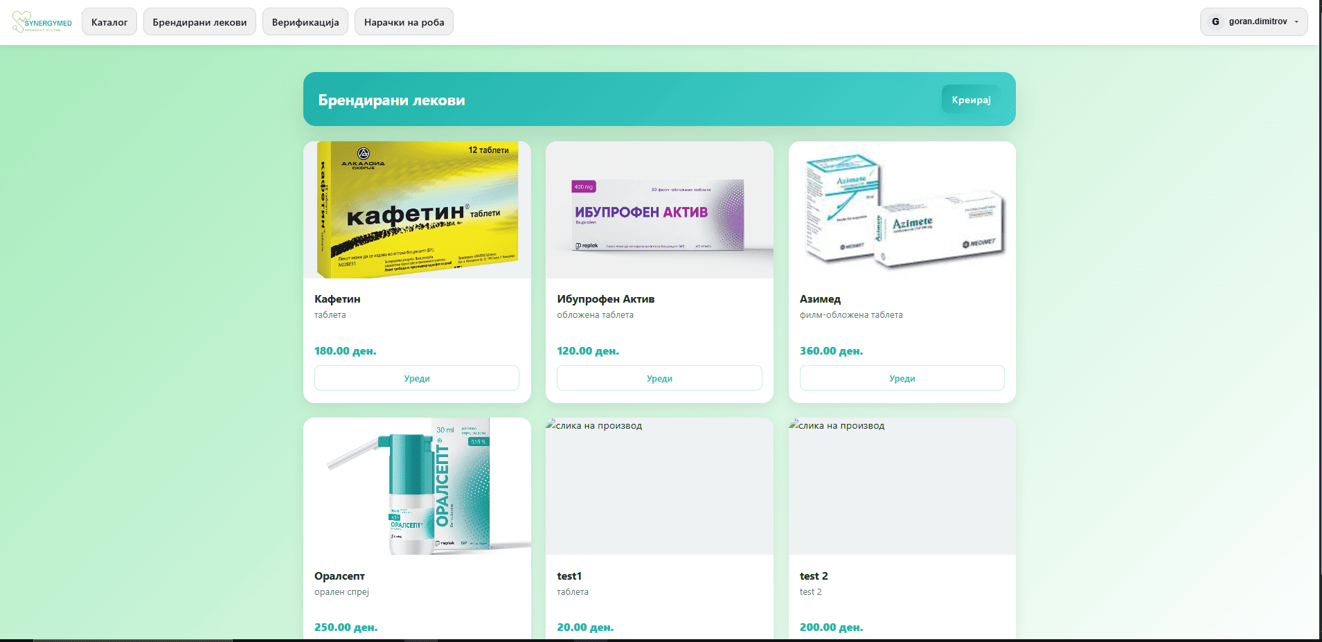 - По кликнување на копчето „Брендирани Лекови“ се прикажува страна каде што се прикажани сите лекови.