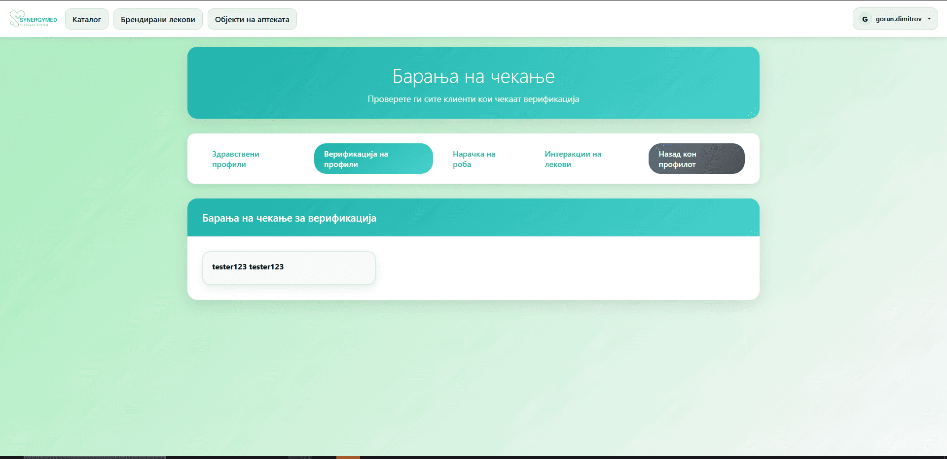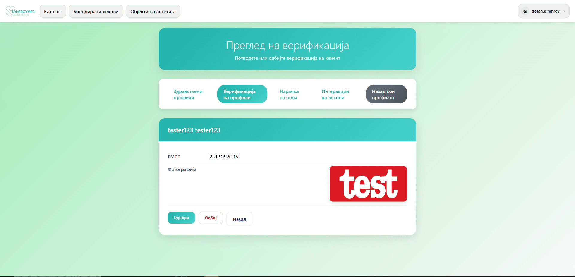 - Фармацевтот одлучува дали да го одбие или прифати барањето за верификација.